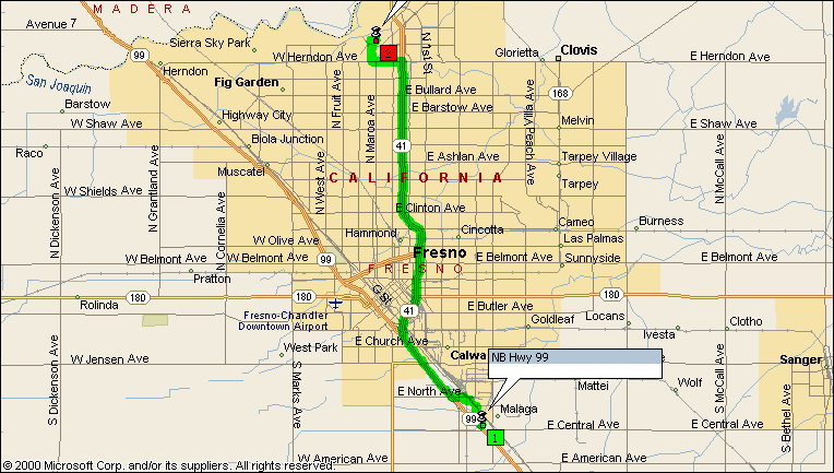 | 9:08 AM | 2.9 | At SR-41 SR-99 Exit, bear LEFT (North-West) onto SR-41 [SR-99] for 9.6 mi |